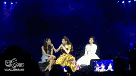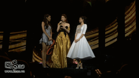 Và cũng rất ngẫu hứng, Lan Khuê và Phạm Hương đã cùng phụ họa cho Hồ Ngọc Hà trình diễn ca khúc Ngày mai em đi.