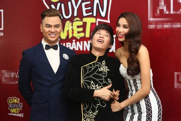 Trong hậu trường, Phạm Hương thân thiện chụp hình cùng NSƯT Hoài Linh.