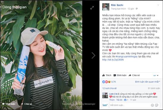 Hưởng ứng lời kêu gọi này, đông đảo các bạn trẻ tài năng được giới trẻ yêu mến như Phan Ý Yên, hot girl Salim, Rhibi Sachi… đã đồng loạt chia sẻ ‘Nắng của mình’ trên trang cá nhân với muôn màu những cảm xúc và suy nghĩ riêng. Cùng dạo một vòng ‘tham quan’ facebook của các bạn ấy nhé!