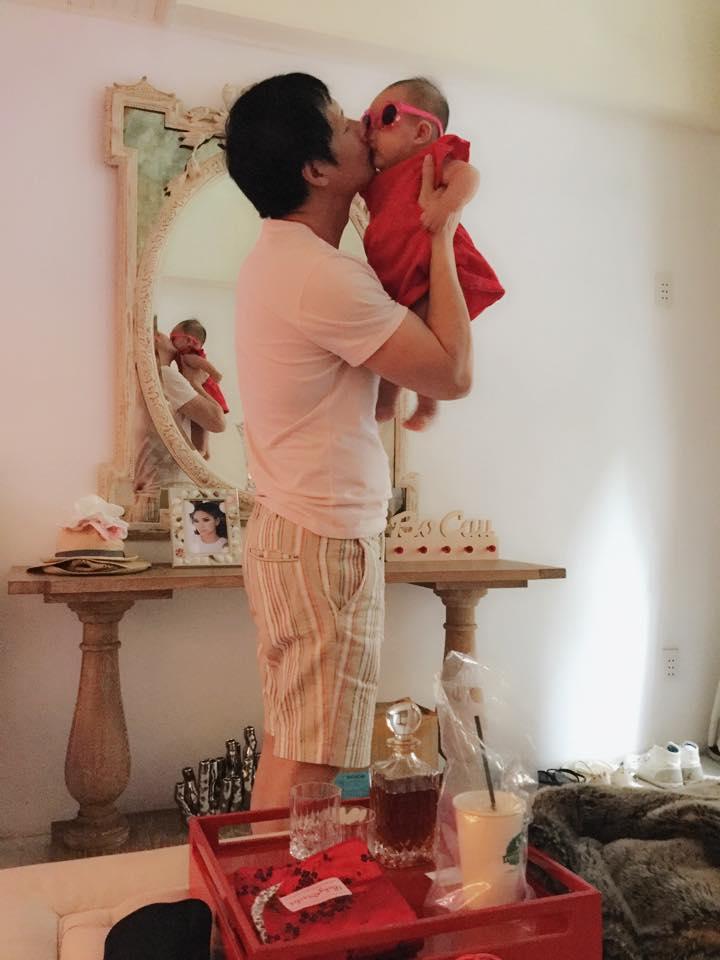Dù ở nhà hay đi ăn, ông xã Phan Như Thảo đều vô cùng cưng nựng con gái
