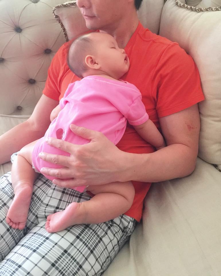 Dù ở nhà hay đi ăn, ông xã Phan Như Thảo đều vô cùng cưng nựng con gái