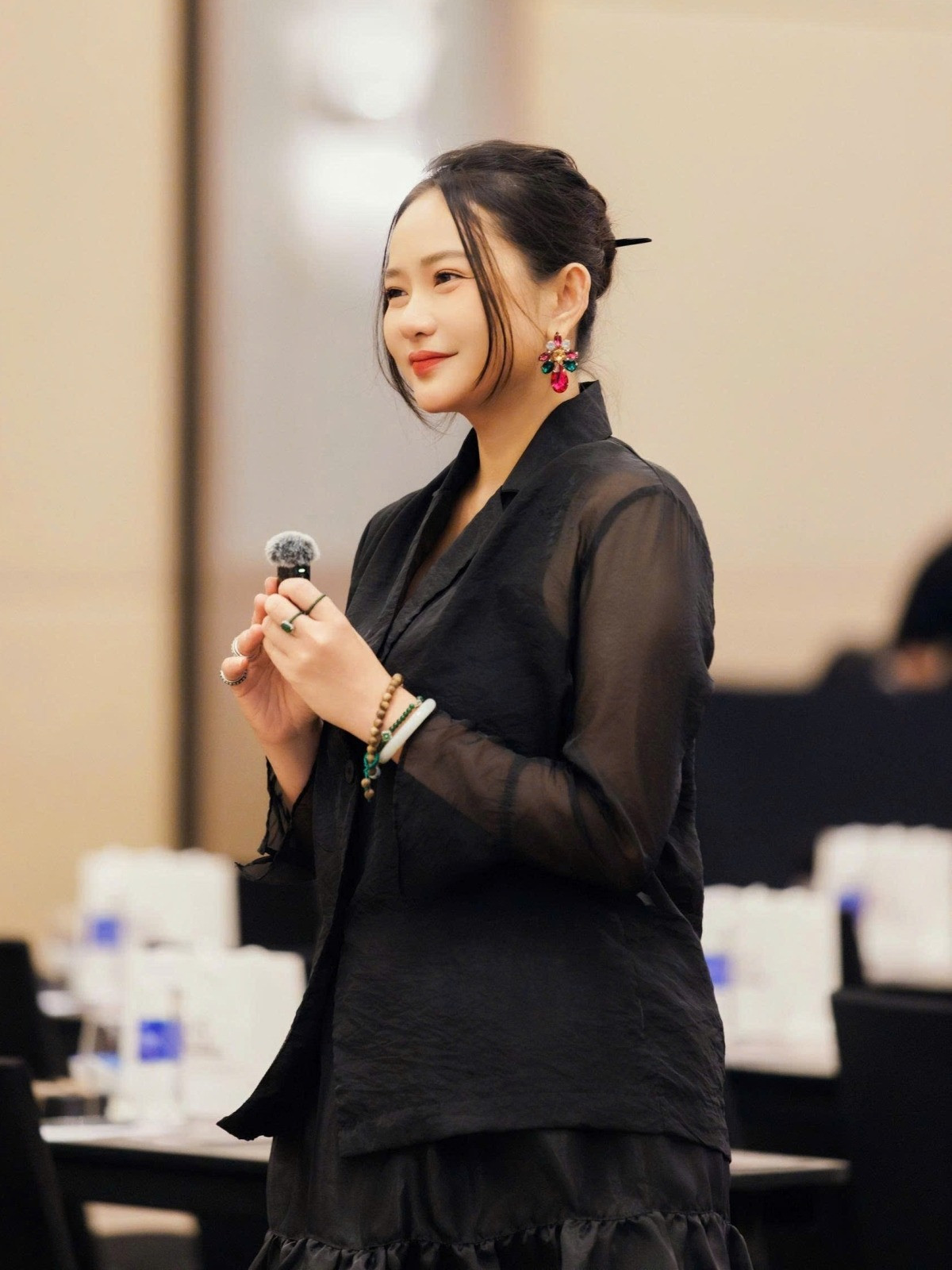 Tuy ngoại hình có tăng cân nhưng gương mặt của bà xã đại gia Đức An vẫn rất tươi tắn, rạng rỡ, không bị phát tướng. Chỉ có vóc dáng kém thon thả nên cô phải lựa chọn trang phục tối màu, rộng rãi để giấu dáng.