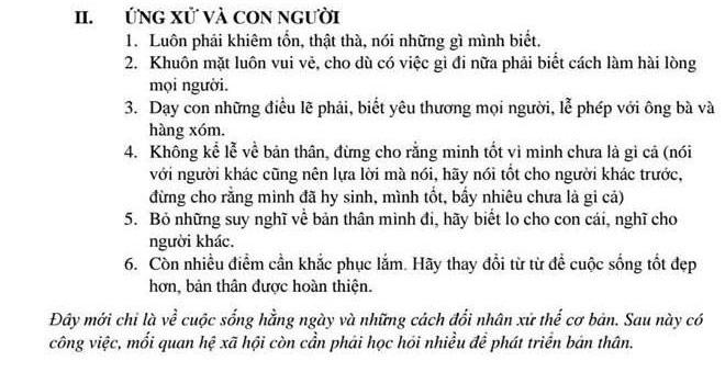 Đây mới chỉ là về cuộc sống hàng ngày và cách đối nhân xử thế cơ bản, sau này có công việc, mối quan hệ xã hội còn cần phải học hỏi nhiều hơn để phát triển bản thân.”