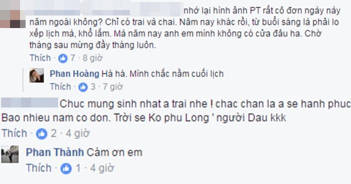 Mọi người gửi lời chúc mừng Phan Thành thoát khỏi kiếp cô đơn trong ngày sinh nhật.