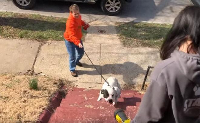 Người chủ mới của căn nhà đã kịp thời giải cứu nàng pitbull. Vì vẻ phấn khích không ngừng, chú được mọi người đặt tên là Jumping Bean.