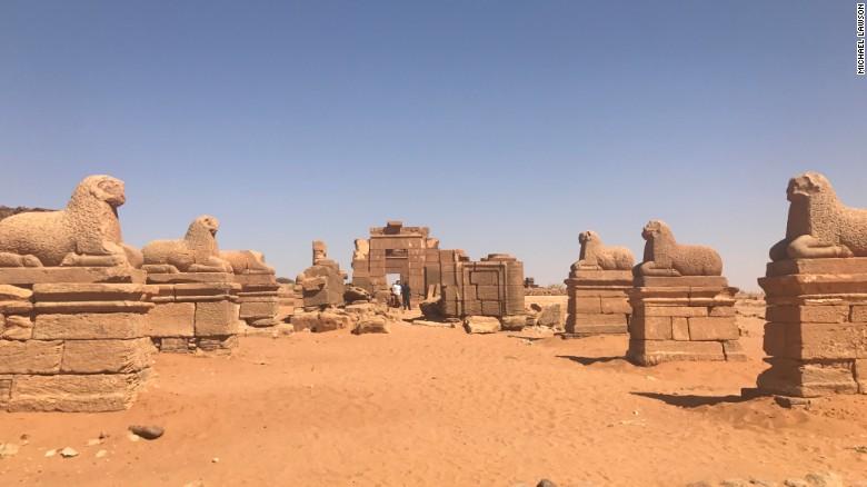 Các bức tượng đá dọc lối vào khu lăng mộ Amun ở Naga