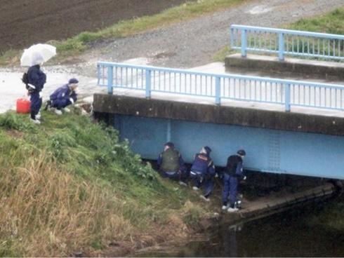 Các nhà điều tra kiểm tra hiện trường nơi tìm thấy thi thể của bé gái 9 tuổi người Việt ở thành phố Abiko, tỉnh Chiba, Nhật Bản. Ảnh: Asahi.