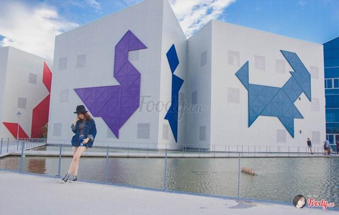 Được thiết kế theo ý tưởng trò chơi gấp giấy Tangram của Nhật Bản. Xa xa, những cánh hạc giấy, thỏ giấy, chó giấy với đủ màu sắc rực rỡ trên nền gạch trắng thực sự gây ấn tượng lớn cho người chiêm ngưỡng. Đồng thời hí họa về một thế giới tuổi thơ đầy sắc màu, sáng tạo và hồn nhiên.