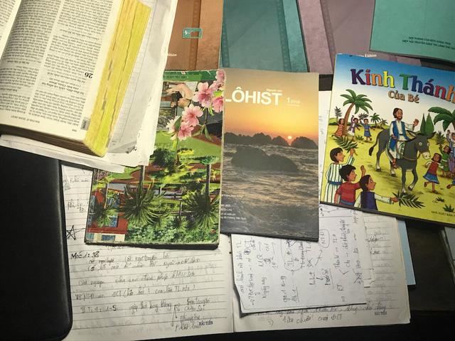 Các tài liệu truyền bá đạo trái phép thu giữ từ phòng trọ của đối tượng.