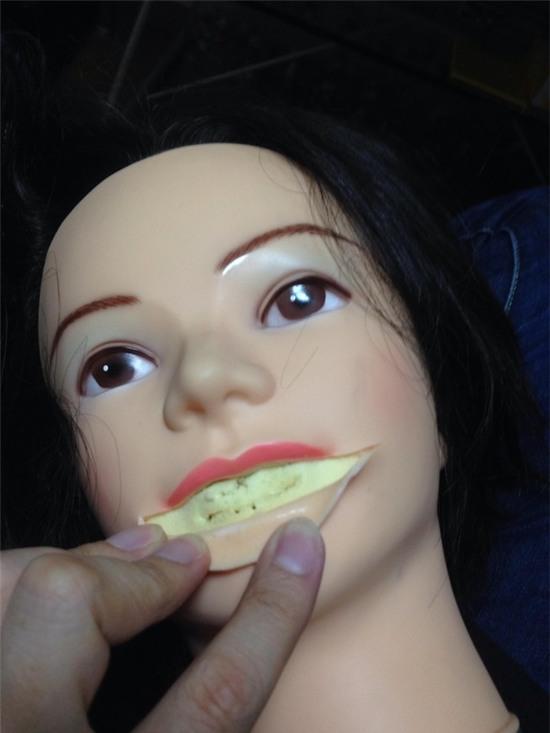 Chủ nhân con búp bê tiếp tục rút bớt lớp mút bên trong miệng ra mà không ngờ... (Ảnh: Internet)