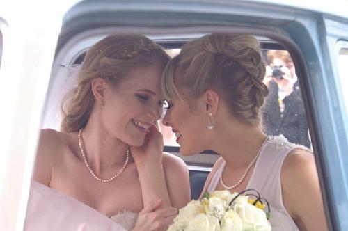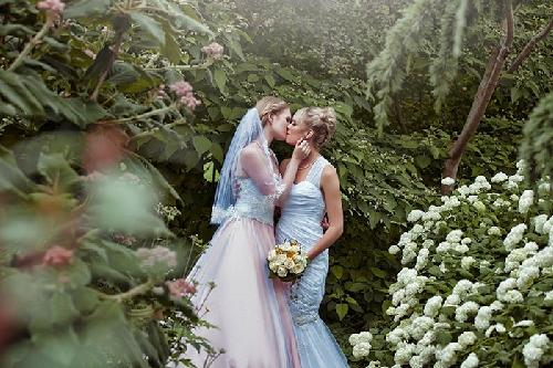 Ảnh cưới của họ được chụp trong bối cảnh công viên hoặc các địa điểm công cộng khá quen thuộc. Tuy vậy, vẻ xinh đẹp của hai cô gái đồng tính vẫn khiến bộ ảnh cưới trở nên huyền ảo như trong chuyện cổ tích.