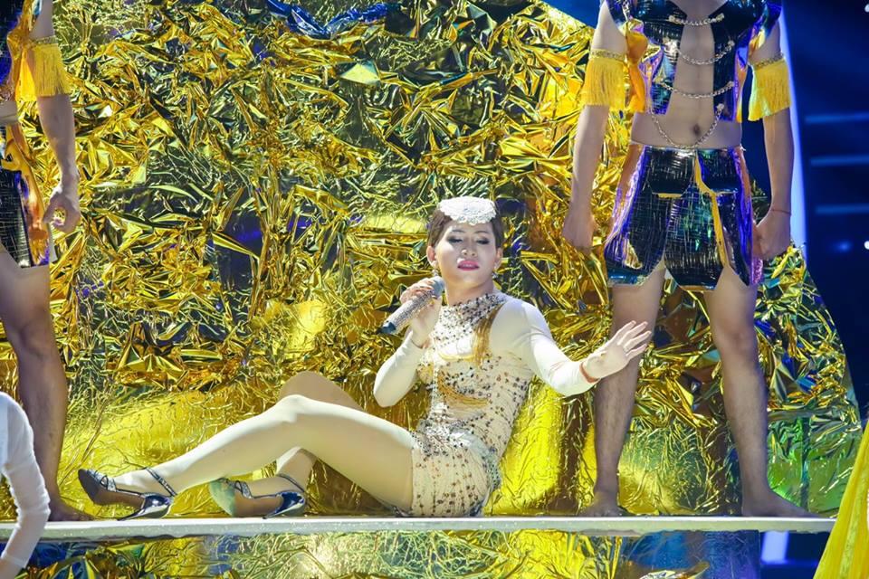 Phần thi của Quốc Thiên hóa thân thành ca sĩ Hồ Quỳnh Hương trong tập 10 "Gương mặt thân quen"