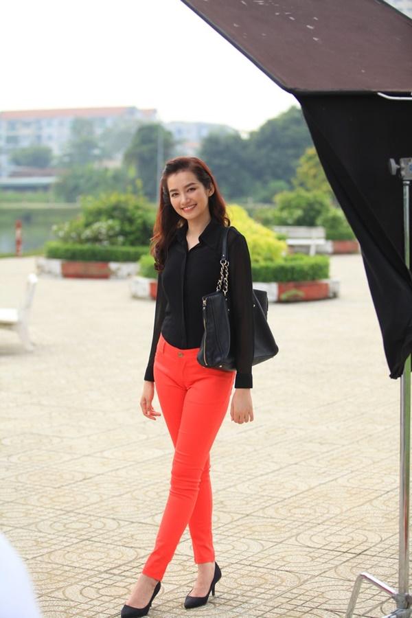 Bộ trang phục áo sơ mi đen và quần jeans hồng cam Trúc Diễn diện đơn giản nhưng hút mắt, giúp cô khoe trọn những đường nét cơ thể gợi cảm. Chưa kể, mái tóc trong những hình ảnh sau gọn gàng hơn hẳn, mang lại vẻ sáng sủa cho gương mặt thanh tú của Top 15 Hoa hậu Quốc tế.
