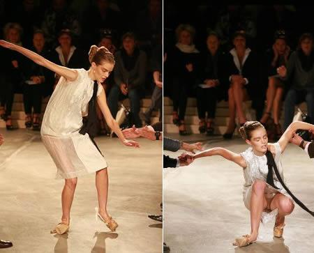 Là một trong những người mẫu catwalk đắt giá, Lindsey Wixson không tránh khỏi sự cố tại show thời trang Jean Paul Gaultier
