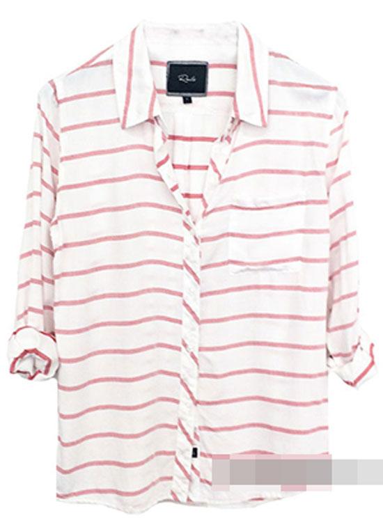 Áo sơ mi trắng kẻ sọc ngang màu hồng là item rất đáng yêu và dễ thương. Cô