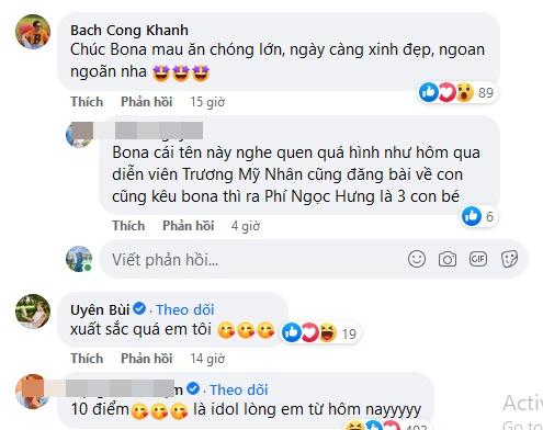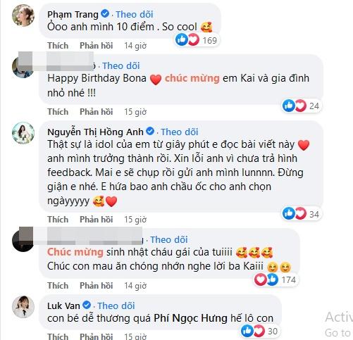 Rất nhiều đồng nghiệp, bạn bè, người hâm mộ để lại lời chúc dưới bài đăng của Phí Ngọc Hưng, không quên nhắc tên đến bé Bona - con gái Trương Mỹ Nhân.