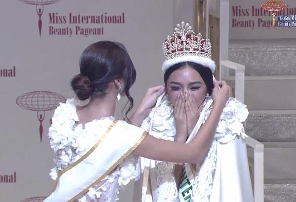 Kylie Versoza bật khóc trong giây phút đăng quang. Cô nhận vương miện từ hoa hậu