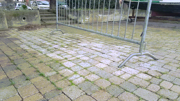 Vỉa hè tự động nâng hạ như thể có người đẩy từ phía dưới lòng đất.
