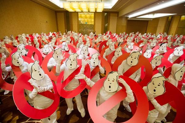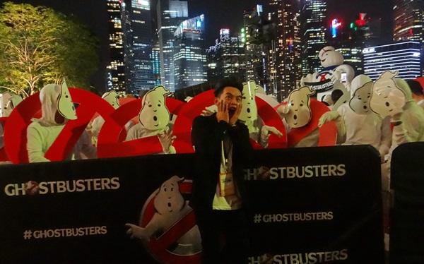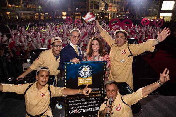 Trên thảm đỏ Ghostbusters- Biệt Đội Săn Ma mới nhất tại Singapore, 263 fans đã có mặt tại khu vực Marina Bay Sand trong bộ đồ con ma màu trắng cùng chiếc vòng cấm màu đỏ đặc trưng của thương hiệu Ghostbusters.