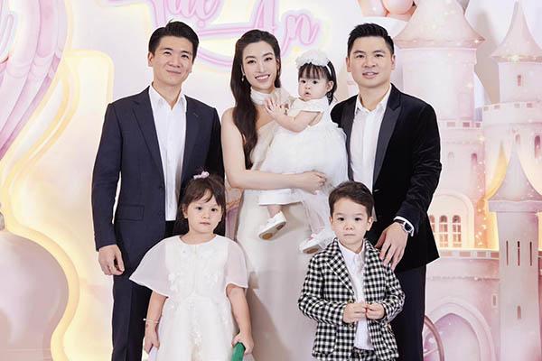 Đỗ Quang Vinh và 2 con sinh đôi cùng với vợ chồng Hoa hậu Đỗ Mỹ Linh và con gái