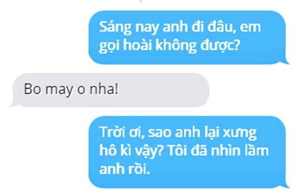 Ở nhà buồn cô gái trẻ nhắn tin cho bạn trai đến chơi, "Anh oi! ba ma em khong co nha, em dang coi quan, den ngay di anh, muon lam roi. Tien the mua bao moi nhe, o nha toan la bao cu… ma thoi khong can mua bao dau, em vua mat kinh roi, khong nhin duoc nua anh oi, den ngay di… muon lam rồi".