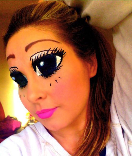 Một phong cách hóa trang cũng không kém phần nổi tiếng thứ hai đó là vẽ mắt hoạt hình lên vị trí bầu mắt. Với phong cách hóa trang này, khuôn mặt sẽ mang đúng chất Anime hơn cả.