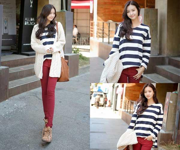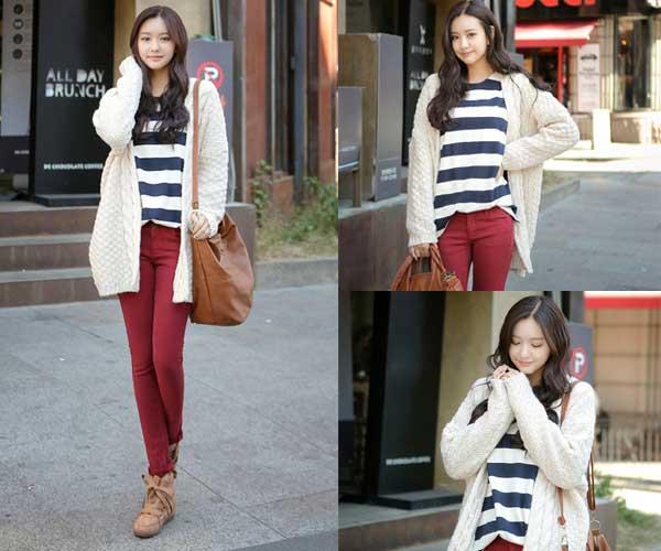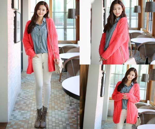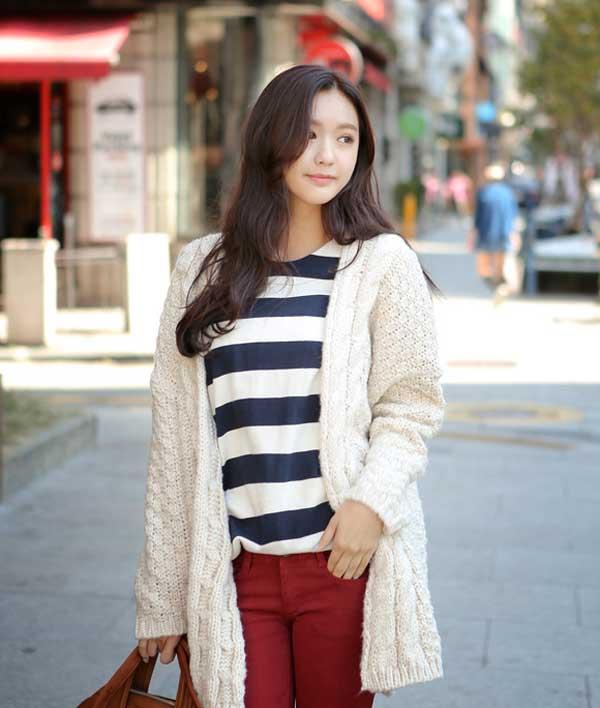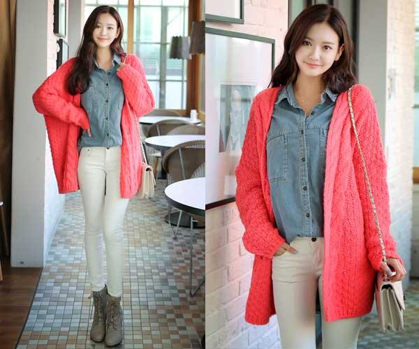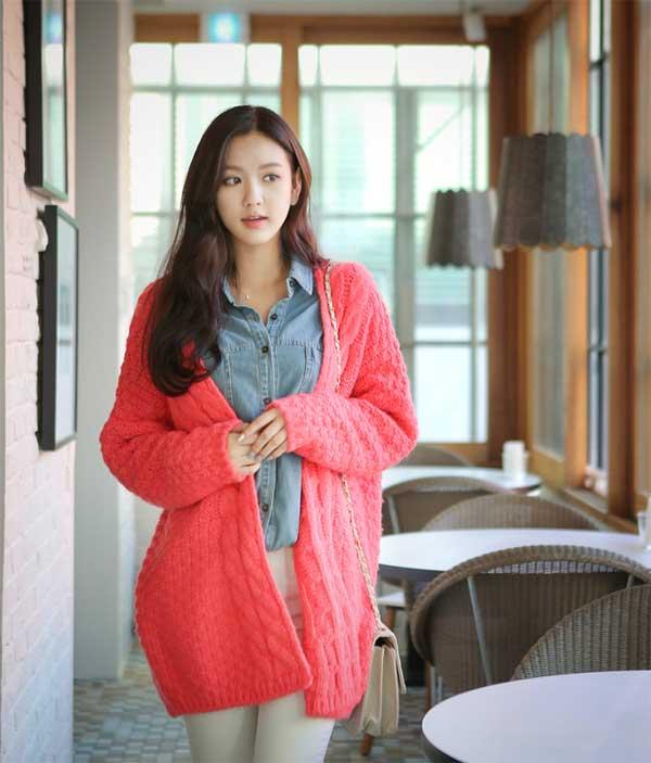 Chiếc áo khoác cardigan dáng rộng phù hợp với bạn gái có chiều cao tương đối.