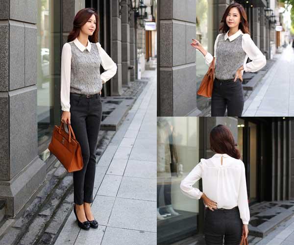 Không cần xúng xính những bộ váy áo quá điệu đà, diêm dúa, trang phục đơn giản, năng động như áo sơ mi dáng rộng khoác ngoài, áo gile, áo len phối màu sắc lạ mắt mix cùng quần jeans, kaki dày dặn cùng đôi boots, giày lười ...sẽ mang đến cho bạn gái công sở diện mạo thật mới mẻ, hiện đại.