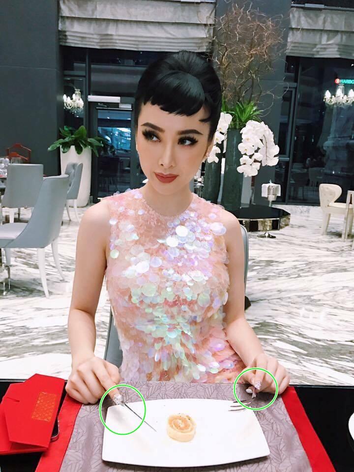 Hình ảnh ngón tay trỏ đính đá của Angela Phương Trinh giống với cô gái của Võ Cảnh