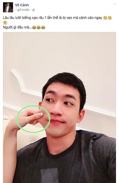 Đã khéo léo phủ nhận tin đồn "phim giả tình thật" trong thời gian ra mắt bộ phim "Sứ mệnh trái tim", vì vậy những bằng chứng tình yêu được cư dân mạng bóc mới đây của Angela Phương Trinh và Võ Cảnh đang khiến dư luận xôn xao. Cũng như bao chàng trai trẻ khác, Võ Cảnh thường xuyên cập nhật trạng thái của mình trên trang mạng xã hội. Trong lúc cao hứng, Võ Cảnh chia sẻ hình ảnh mình bị cô gái vẹo má với lời bộc bạch đầy trìu mến: Lâu lâu lười biếng cạo râu một lần thế là bị vẹo má cảnh cáo ngay... người gì đâu mà...