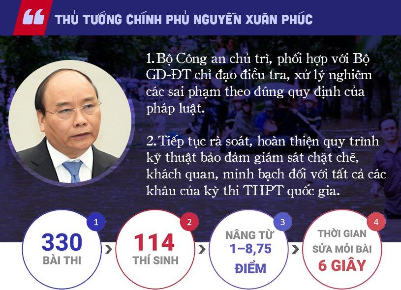 Tối 17/7,Thủ tướng Chính phủ Nguyễn Xuân Phúc đã ghi nhận, biểu dương Bộ GD&ĐT, Bộ Công an đã kịp thời, khẩn trương rà soát, xác minh kết quả thi bất thường của kỳ thi THPT quốc gia năm 2018 tại tỉnh Hà Giang.
