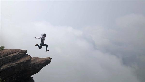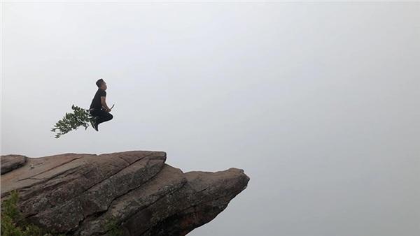 Bức ảnh đã khiến dân mạng không khỏi thót tim vì sợ. Chỉ cần sơ sẩy 1 chút thôi thì có thể bạn trẻ đó sẽ lao người xuống vực.