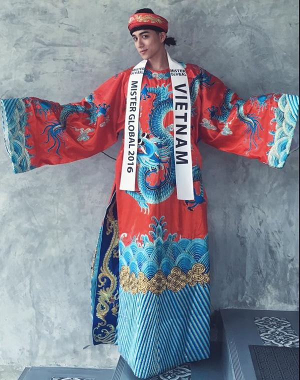 Trong phần thi trang phục dân tộc, anh lựa chọn một bộ cánh đậm chất Á Đông với họa tiết là Rồng. Anh lấy cảm hứng từ áo dài của Vua chúa ngày xưa, trang phục mặc dù gây nhiều tranh cãi trên diễn đàn Việt Nam nhưng lại giúp anh tự tin thể hiện trong phần thi nhờ sự cầu kỳ và hoành tráng của nó.