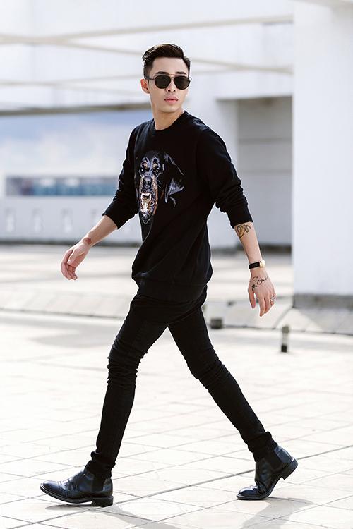 Trung Quân Idol chân ngắn và khá to nhưng vẫn trung thành với mốt quần skinny