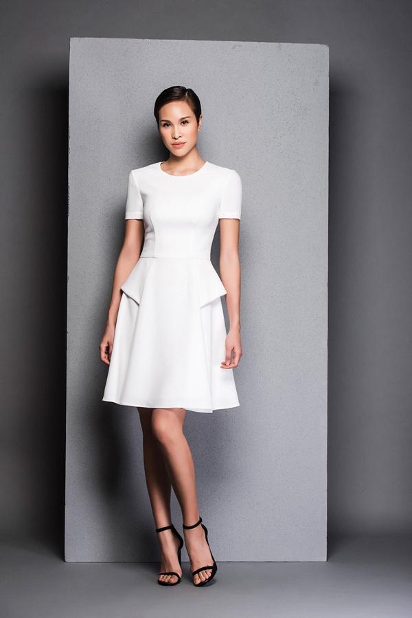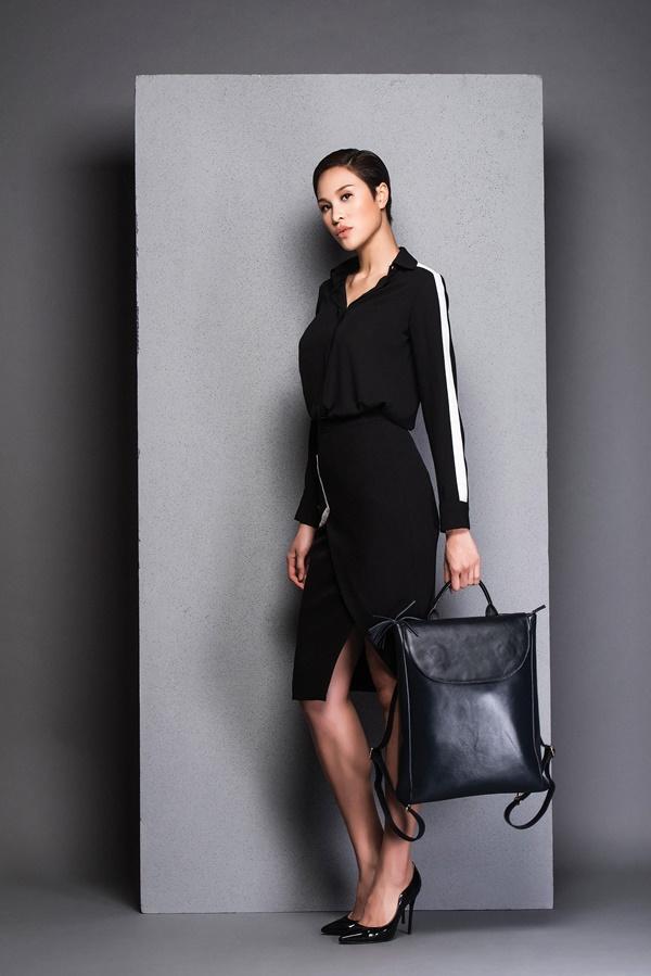 Bộ váy đen với điểm nhấn là sọc trắng ở phần thân váy trước cũng từng được Hà Tăng