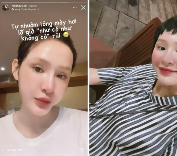 Đáng chú ý hơn cả là hình ảnh quán quân Em Xinh Say Hi "flex" hàng lông mày đang trong trạng thái nhuộm màu với biểu cảm lầy lội. Đôi lông mày được cẩn thận trùm cả màng bọc để tăng hiệu quả ăn màu. Với khoảnh khắc này, dân tình rất hóng thành quả làm đẹp của Phương Mỹ Chi và kết quả có thể nói khá mỹ mãn.