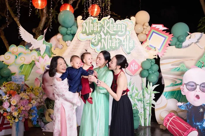 Mới đây, Phương Oanh - Shark Bình tổ chức tiệc thôi nôi tròn 1 tuổi cho cặp song sinh Jimmy - Jenny cực kì hoành tráng. Khung cảnh buổi tiệc được trang trí hoành tráng với bóng bay, hoa tươi. Ngoài ra, tại sảnh chính của tiệc còn đặt nhiều hình ảnh chibi của Jimmy - Jenny kèm theo tên thật của 2 bé là Nhật Khang - Nhật Hạ.
