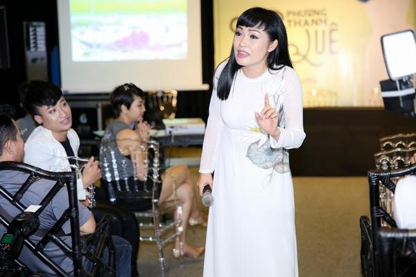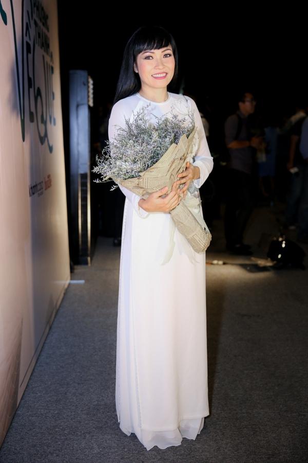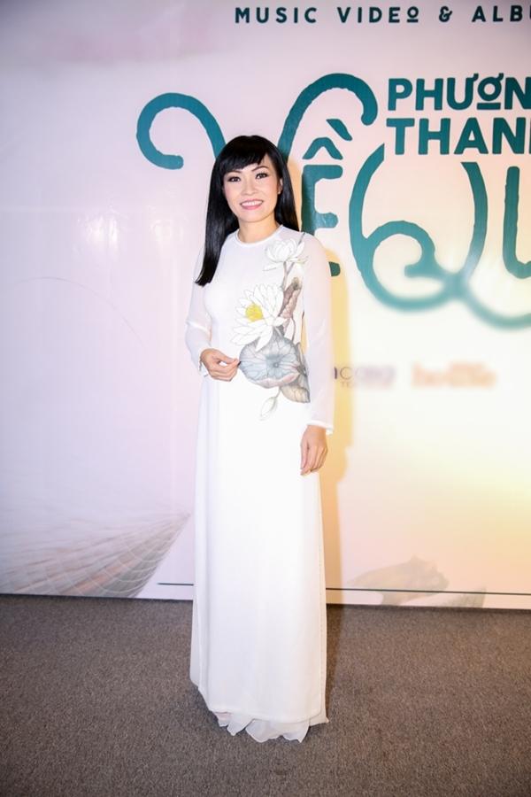 Cũng chính vì thế mà Phương Thanh đã chọn cho mình bộ áo dài nền nã xuất hiện trong buổi họp báo.