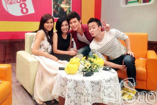 Trong buổi ghi hình talk show diễn ra tối qua, ca sỹ Phương Thanh xuất hiện với mái tóc ngắn trẻ trung nhưng cũng rất nữ tính cùng chiếc đầm đen bó sát khoe đường cong đã khiến không ít người bất ngờ và dành lời khen tặng cho chị về sự biến hóa này. Ca sĩ Mèo Hoang ngay khi gặp Nathan Lee đã tức tay bắt mặt mừng với nam ca sĩ điển trai này, bởi sau một thời gian bận chạy show, giờ chị mới gặp lại người em người bạn mà cô rất yêu quý. Cả hai không ngần ngại thân mật trước ống kính phóng viên và họ đã có những bức hình rất dễ thương tinh nghịch và tình cảm. ''Người yêu tin đồn'' của Nathan Lee là giải vàng Siêu Mẫu 2012 đảm nhận vai trò MC của chương trình cùng với diễn viên Lương Mạnh Hải đã tạo thành ''bộ tứ xì tin'' không ngừng ''tám'' và vui đùa thoải mái trong suốt buổi ghi hình