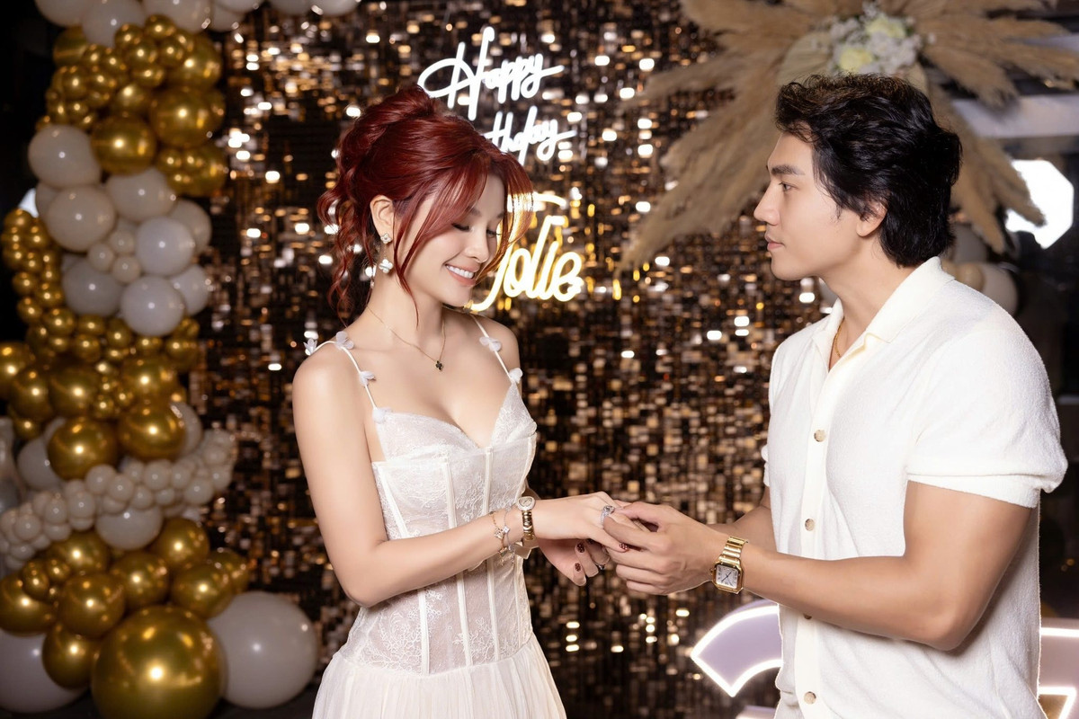 Đặc biệt, Lý Bình lộ rõ sự cưng chiều bà xã khi tặng chiếc nhẫn kim cương khủng. Cả hai không ngại thể hiện cử chỉ tình cảm trước đám đông. Bên nhau 3 năm nhưng cặp đôi vẫn cực kì mặn nồng.