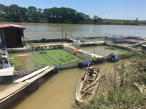 Chiếc cầu phao dẫn từ bờ xuống những lồng cá trên sông cầu của anh Nguyễn Xuân Thủy, nơi xảy ra vụ tai nạn thương tâm