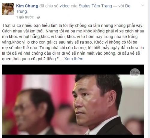 Trước những ý kiến tranh luận trái chiều của cộng đồng mạng, Kim Chung bày tỏ: “Được mọi người quan tâm nhiều mình cảm thấy rất vui và cảm ơn. Nhưng đây là tình cảm thật sự của ba mẹ mình. Cho tới bây giờ mình vẫn còn buồn và ba mẹ cũng vậy. Chưa ai quen được cảm giác khi mình đi lấy chồng, rời xa cha mẹ để về nhà chồng nên mọi ý kiến trêu chọc mình cũng không bình luận thêm”.