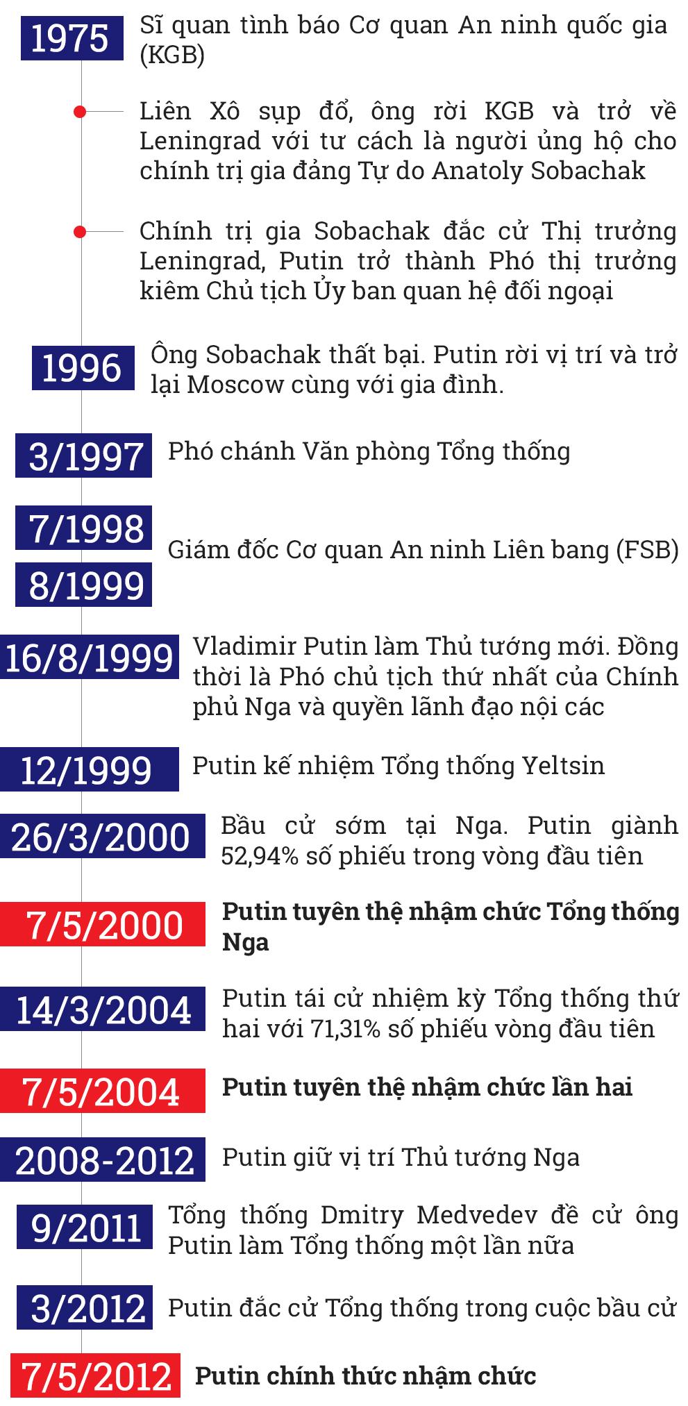 Trong cuộc bầu cử tháng 3/2012, Putin đắc cử Tổng thống và chính thức nhậm chức vào 7/5/2012. Từ năm 2012, nhiệm kỳ Tổng thống Nga được kéo dài từ 4 lên 6 năm theo sửa đổi Hiến pháp ban hành ngày 30/11/2008.