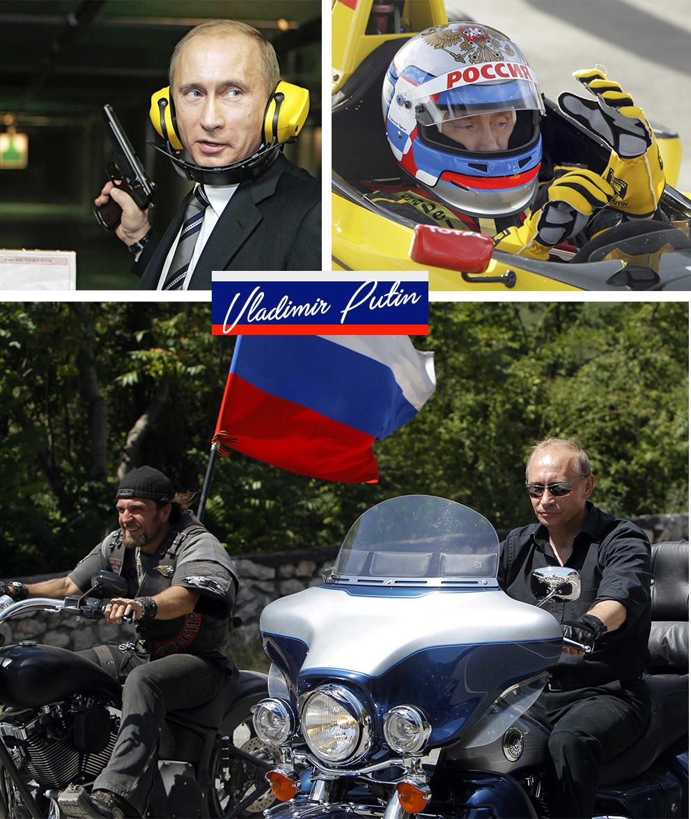 Với thân hình cường tráng khỏe mạnh, Tổng thống Putin không ngần ngại tham gia các hoạt động cần sự linh hoạt của cơ bắp. Có lần ông đích thân dập lửa trong đám cháy rừng khu vực Ryazan, lặn sâu xuống dưới đáy hồ Baikal và Biển Đen, ngồi sau tay lái một chiếc xe đua công thức 1, ngồi thử nghiệm trên máy bay chiến đấu đánh chặn Su-27 và lái thử máy bay ném bom chiến lược Tu-160.