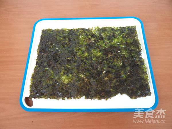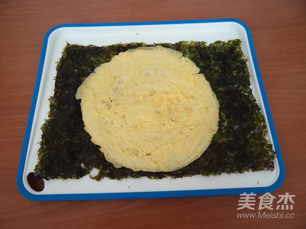 Bước 6: Cho trứng đã chiên đặt lên trên phần rong biển