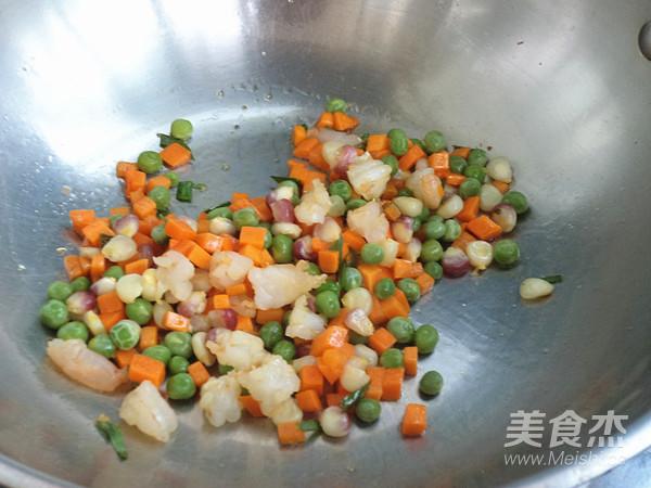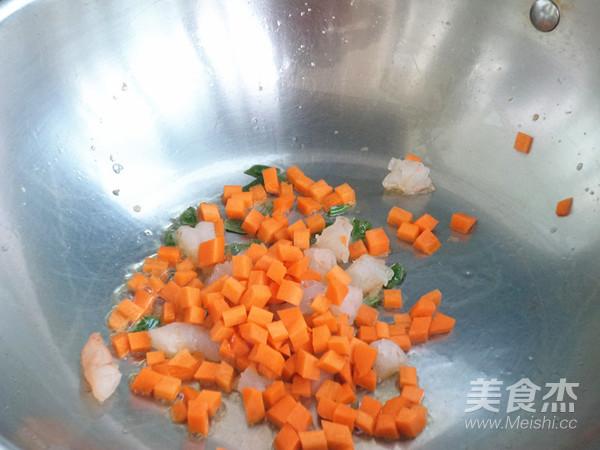 Bước 8: Cho tiếp tôm và cà rốt vào đảo qua cho đều