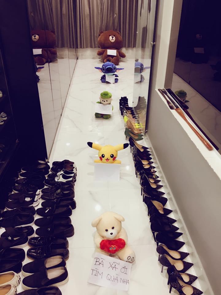 "Valentine muộn! Hari cũng có quà... Chồng tạo bất ngờ đó. Đi diễn xa về, anh xã chuẩn bị rất nhiều gấu bông cầm giấy memo chào đón mình. Và.... nhận xong khóc quá trời, cảm động ghê. Cảm ơn chồng nhé", Hari Won xúc động khoe.