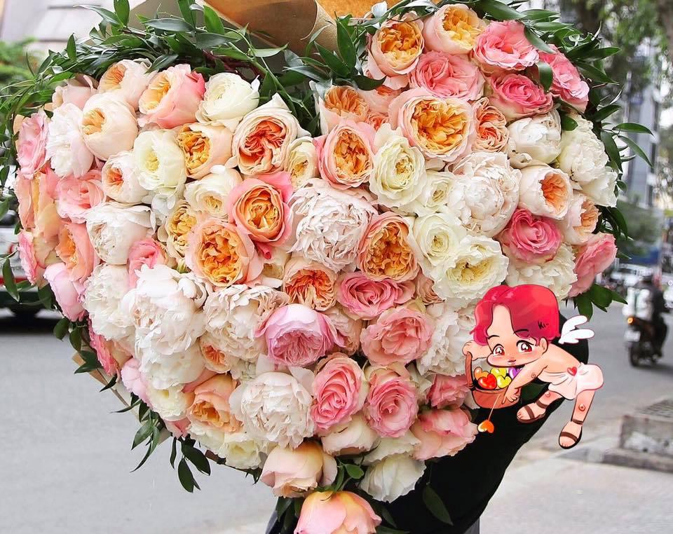 Tận hưởng ngày tình nhân ngọt ngào cùng cô bạn thân Ngọc Trinh tại Côn Đảo, Trà Ngọc Hằng không quên khoe bó hoa hình trái tim đong đầy tình yêu của người tặng gửi tới mình trong ngày ý nghĩa.