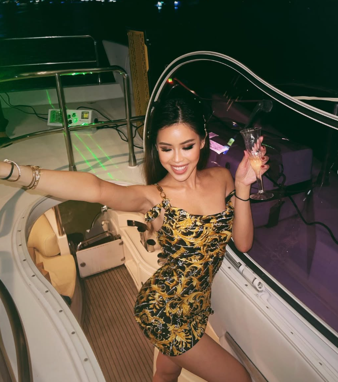 Không phải kiểu party thông thường, mà là những buổi tiệc du thuyền, nơi hội bạn thân toàn "trai xinh gái đẹp nhà giàu" tụ họp. Hay những đêm countdown năm mới tại dinh thự gia đình, dàn sao Việt góp mặt, Tiên Nguyễn luôn là tâm điểm.
