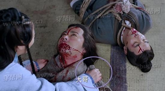 Vết máu trên mặt nam diễn viên cũng không có sự tương đồng trong cùng cảnh quay.